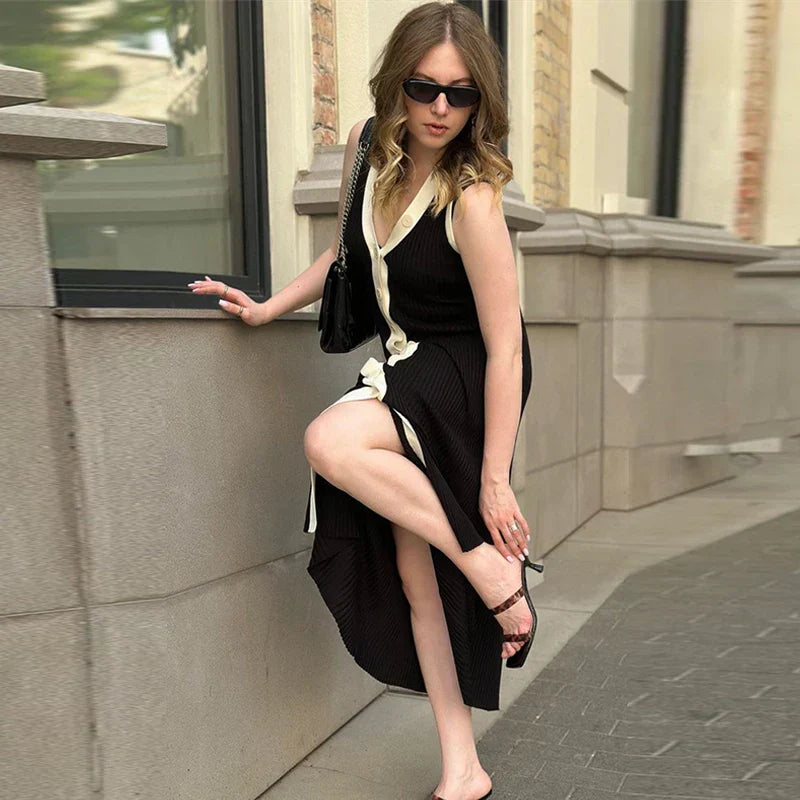 INES | Ärmelloses Kleid mit V-Ausschnitt